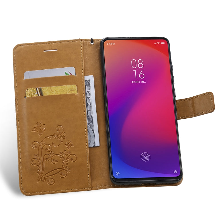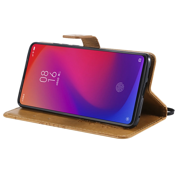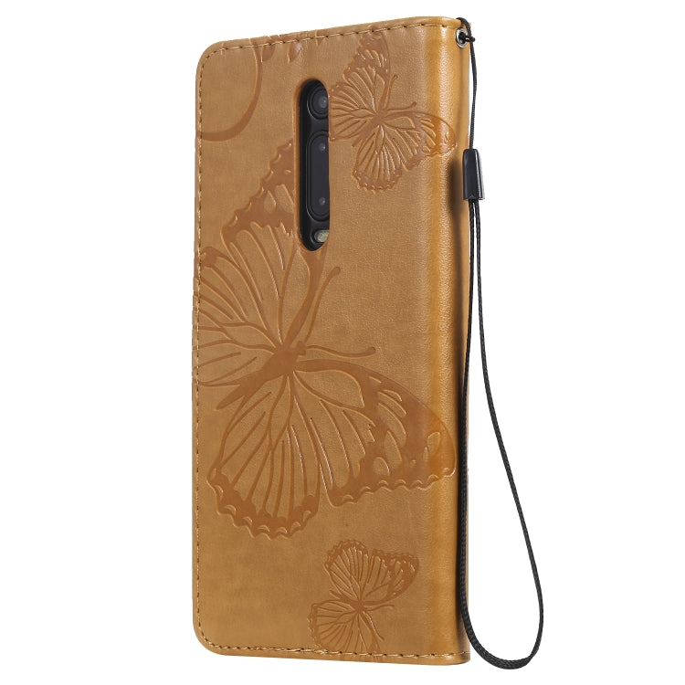 Pressed Printing Butterfly Pattern Horizontal Flip PU Leather Case with Holder & Card Slots & Wallet & Lanyard For Xiaomi Mi 9T & Mi 9T Pro & Redmi K20 & K20 Pro(Yellow)