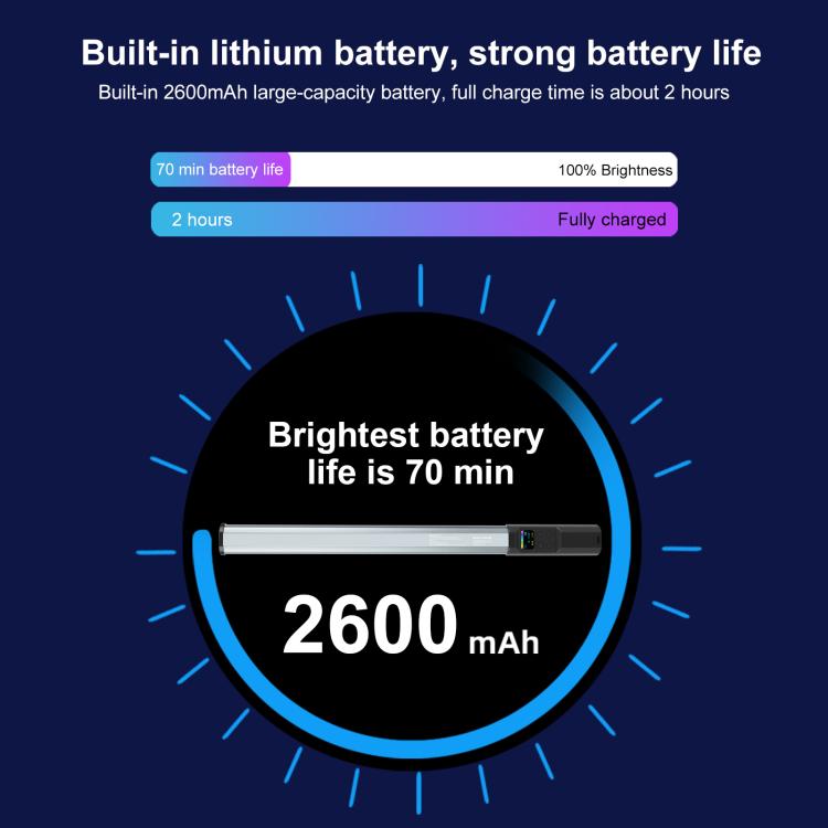 6. Long-lasting Battery & Fast Charging: Built-in 2600mAh rechargeable battery delivers up to 70 minutes at full brightness. Recharge quickly in about 2 hours via Type-C 5V2A input.