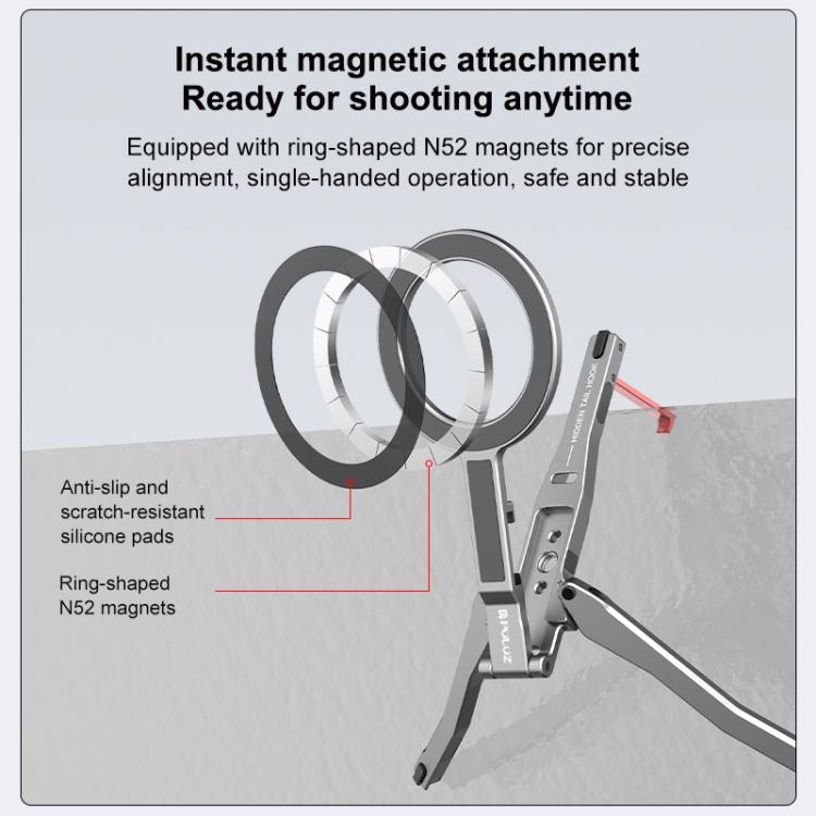 PULUZ Foldable MagSafe Magnet Tripod Desk Phone Mount Handle Bracket (Grey)