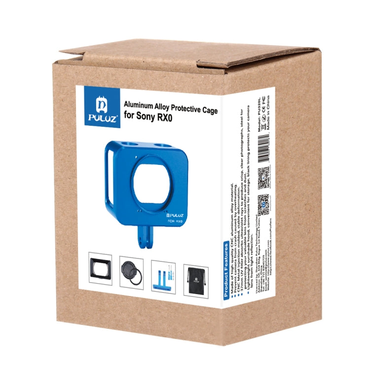 PULUZ for Sony RX0 Aluminum Alloy Protective Cage + 37mm UV Filter Lens + Lens Sunshade with Screws and Screwdrivers(Blue)