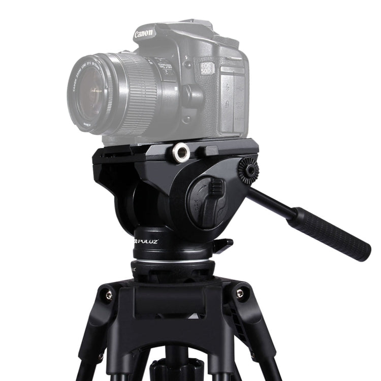 PULUZ Heavy Duty Video Camera Tripod Action Fluid Drag Head with Sliding Plate for DSLR & SLR Cameras, Large Size(Black)