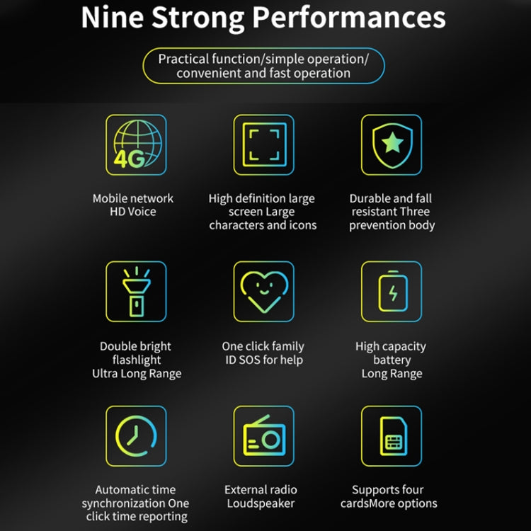 14. Functions: Camera, audio, recorder, video, FM radio, clock, calculator, calendar, SOS supports 5 groups, quick dialing: 9 groups, E-book, facebook, whatsapp;