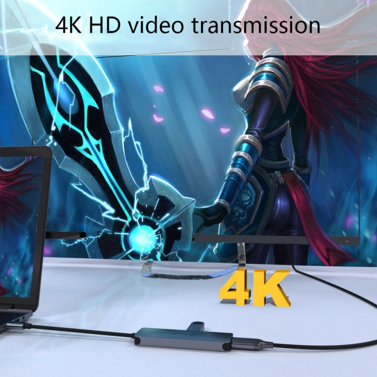 QGeeM QG-UH05-4 5 In 1 TYPE-C Extension HUB Adapter Compatible with SD/TF Reader(5-port)