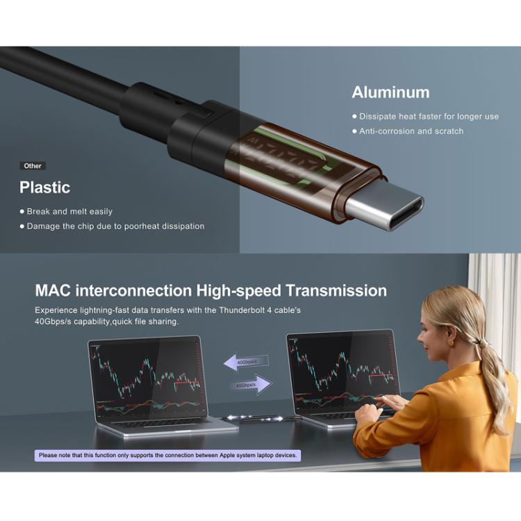 QGeeM USB4 Type-C PD 240W Fast Charging Cable With Digital Display, 40Gbps Data Transfer, 8K 60Hz Video Output For Laptop/Phone/Tablet 1m