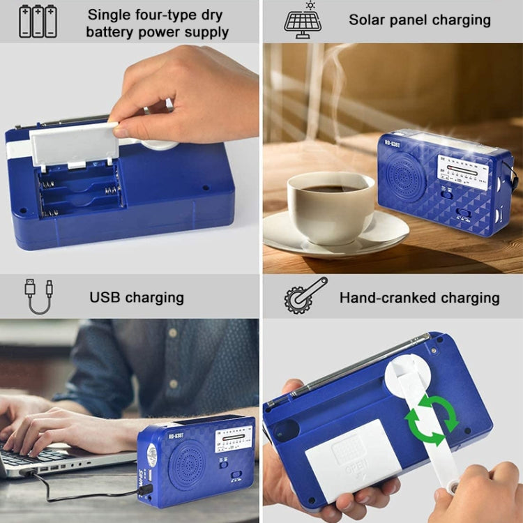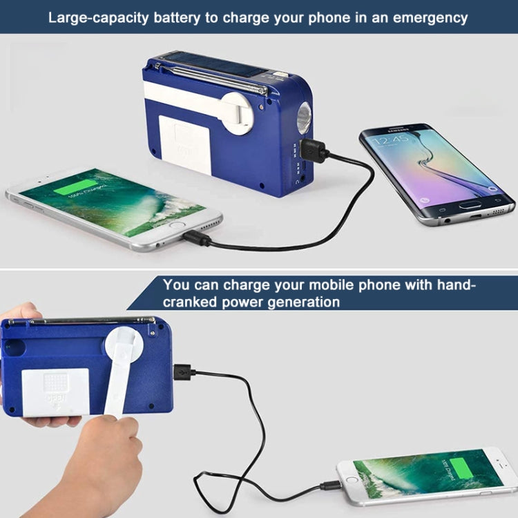 RD-638T Two-band Solar Powered AM / FM Radio Player Flashlight with Dynamo Function(Blue)
