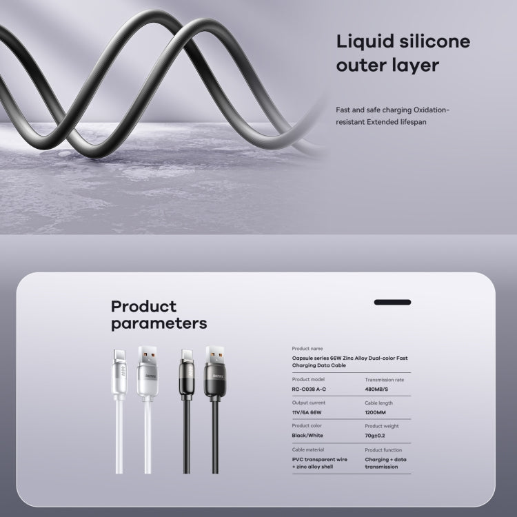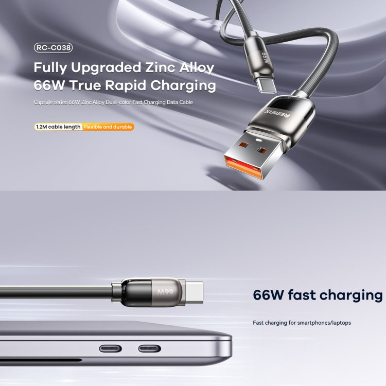 REMAX RC-C038 Capsule 1.2m 66W USB to Type-C PVC Fast Charging Cable(White)