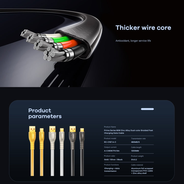 REMAX RC-C167 Prime 1.2m 66W USB to Type-C Braided Fast Charging Cable(Black)