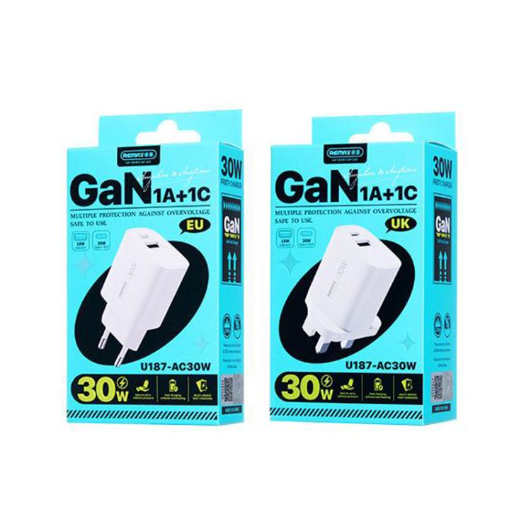 REMAX U187 20W USB and Type-C GaN Fast Charger, Specification:UK Plug(White)