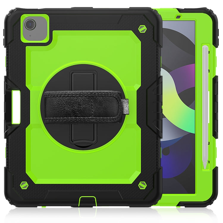 Shockproof Colorful Silicone + PC Protective Case with Holder & Shoulder Strap & Hand Strap & Pen Slot For iPad Air 2022 / 2020 10.9 (Black Yellow Green)