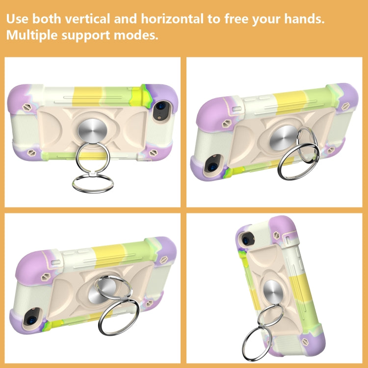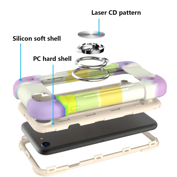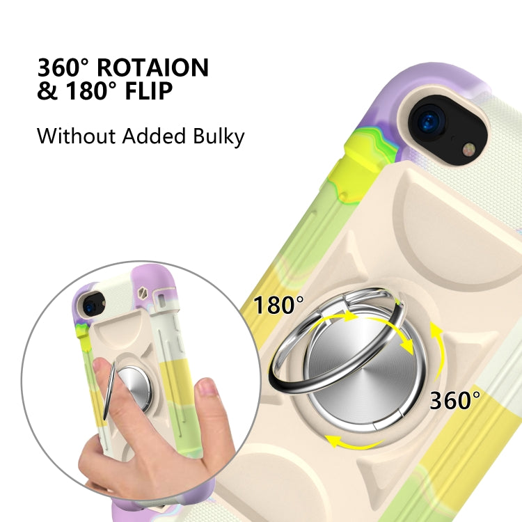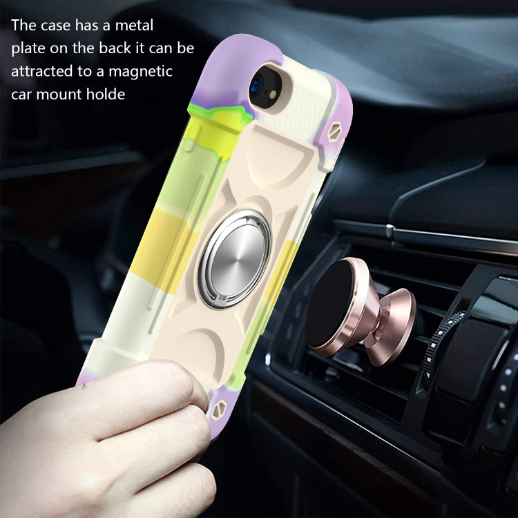 Shockproof Silicone + PC Protective Case with Dual-Ring Holder For iPhone 6/6s/7/8/SE 2022 / SE 2020(Colorful Beige)