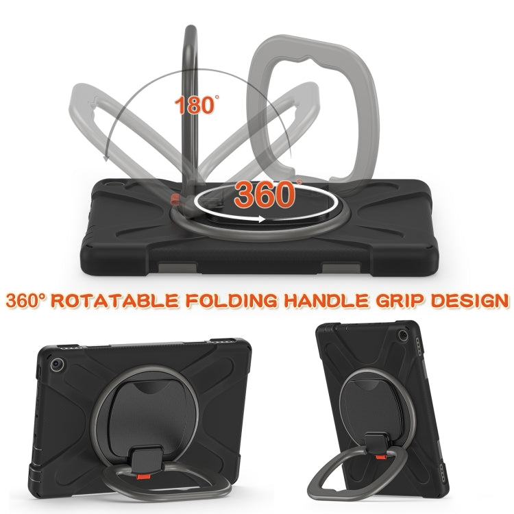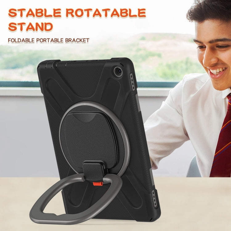 Silicone + PC Protective Case with Holder & Shoulder Strap For Amazon Kindle Fire HD 10 2021(Black+Grey)