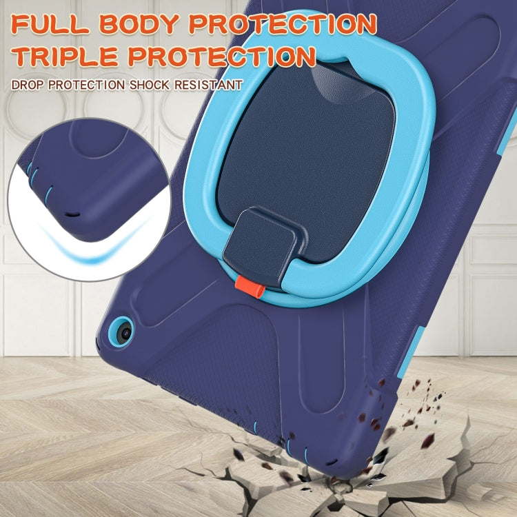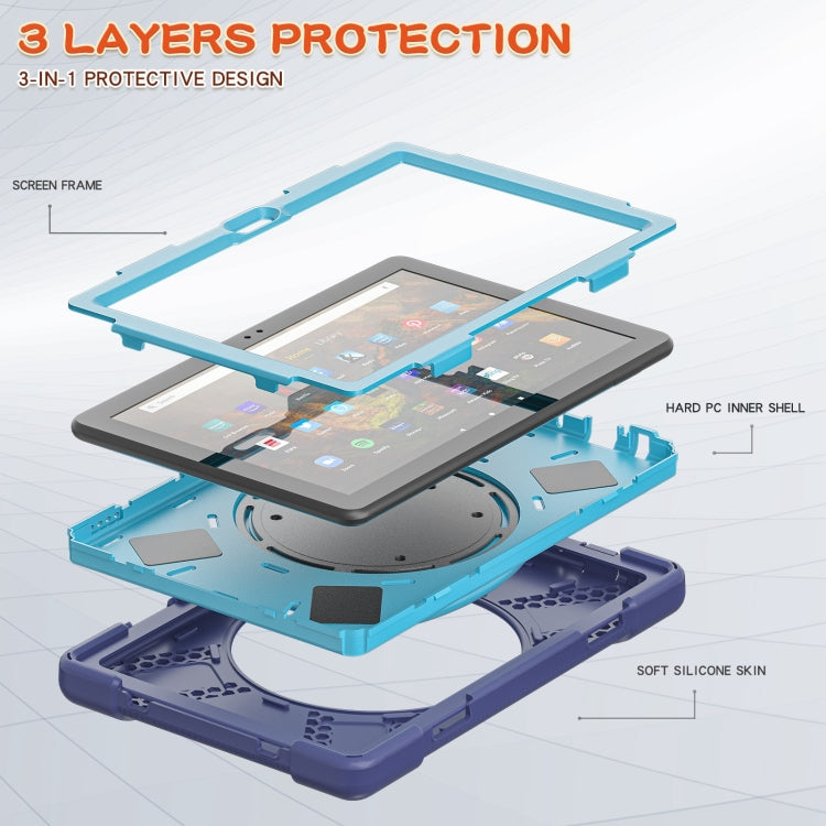 Silicone + PC Protective Case with Holder & Shoulder Strap For Amazon Kindle Fire HD 10 2021(Navy Blue + Blue)
