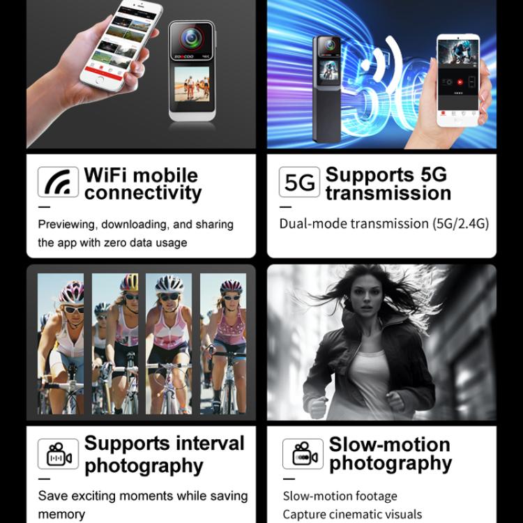 2. 6-axis gyroscope anti-shake technology, the image can remain horizontal and stable even if it is violently bumped or rotated 360 degrees, suitable for most of the shooting scenarios such as cycling, surfing, skiing and so on