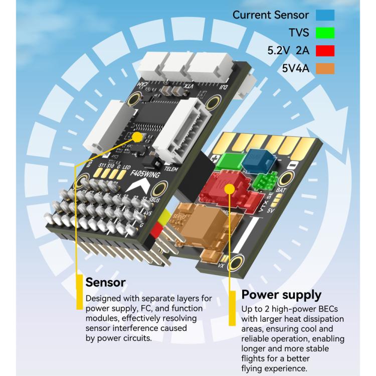 1. Compact Design, Maximum Compatibility: The F405 WING MINI flight controller’s space-saving layout integrates nearly all essential functions seamlessly. From cramped glider cockpits to lightweight 250g fixed-wing models, it adapts effortlessly to any installation space.