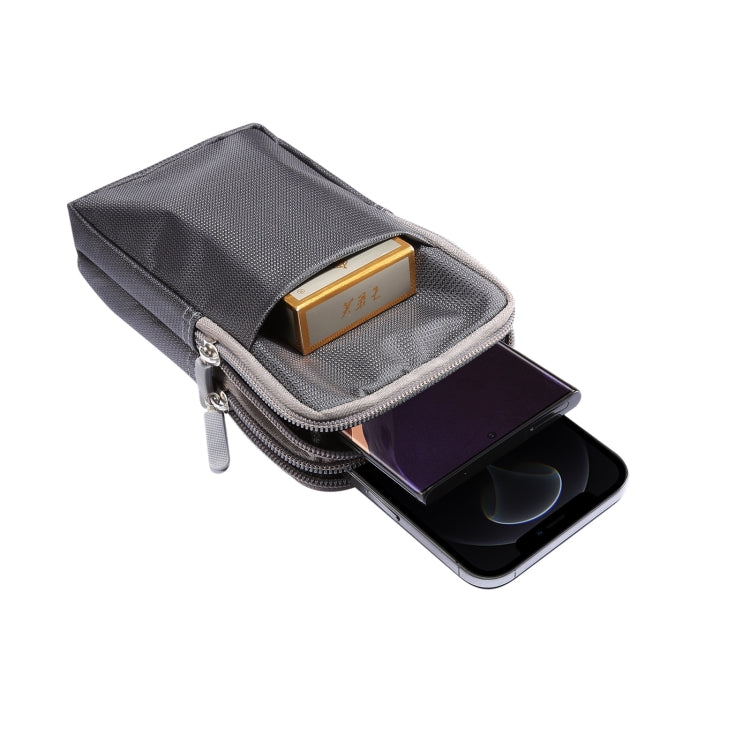 Sports Leisure Drawstring Horizontal Plate Hanging Waist Phone Waist Pack Leather Case, Suitable for 6.7-6.9 inch Smartphones(Dark Gray)