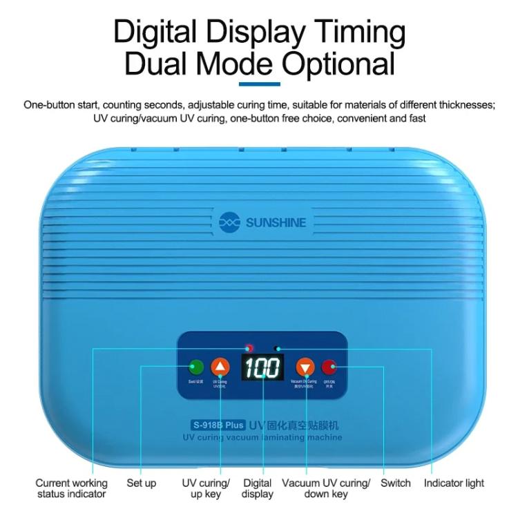 SUNSHINE S-918B Plus UV Curing Box Mobile Phone LCD Screen OCA Bonding Vacuum Laminated Machine(EU Plug 220V)