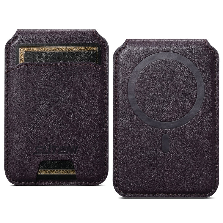 Suteni S2 Phone Magnetic Card Case Card Sleeve MagSafe Magnetic Coil PU Leather(Purple)