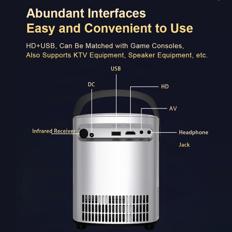 T-2 1920 x 1080P 240ANSI HiSilicon 352 Android 9.0 Portable Projector, US Plug(White)