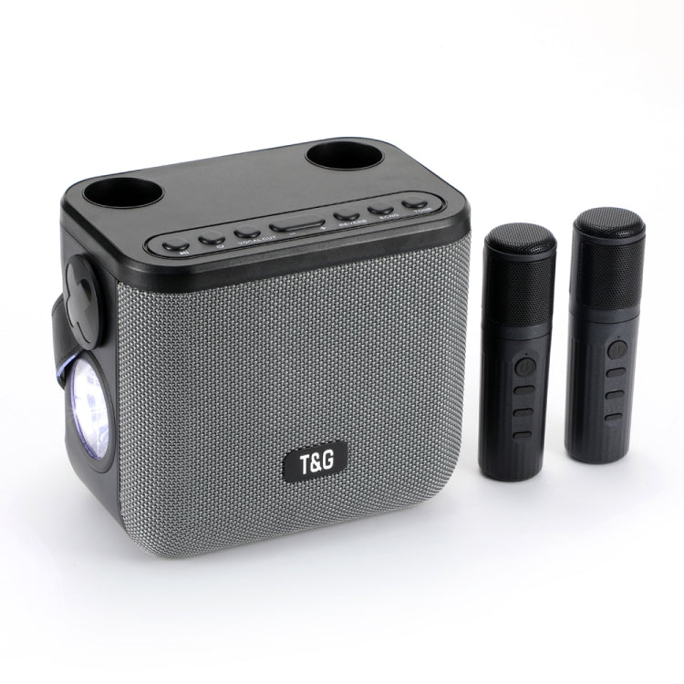 T&G TG545DK Home Handheld Dual-microphone KTV Wireless Bluetooth Speaker with Flashlight(Grey)