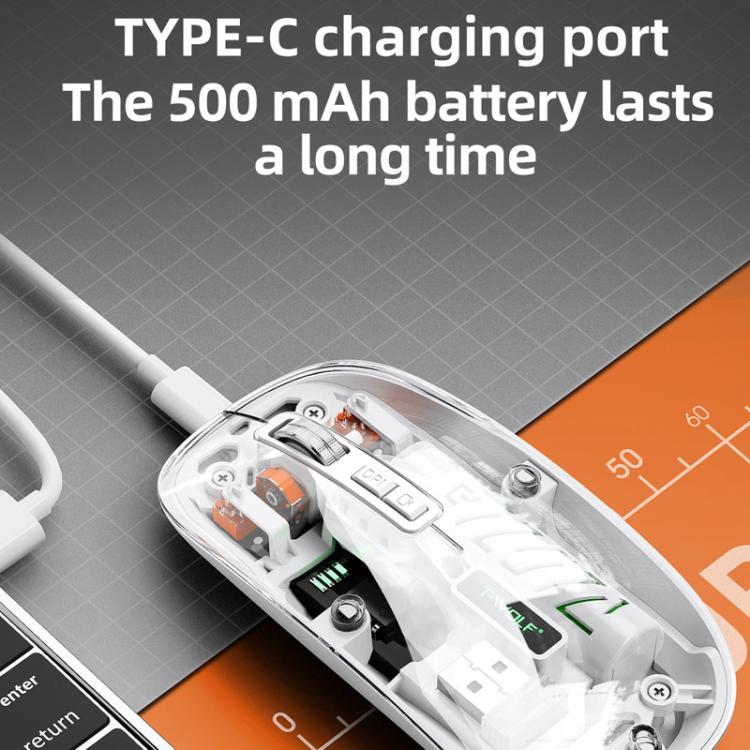 T-WOLF X11 Transparent Wireless Mouse Dual Mode 2.4G+Bluetooth, USB-C Rechargeable with Magnetic Cover(White)