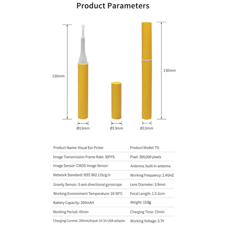 T6 Portable Wireless Smart Visual Earpick Earwax Removal Tool(White)