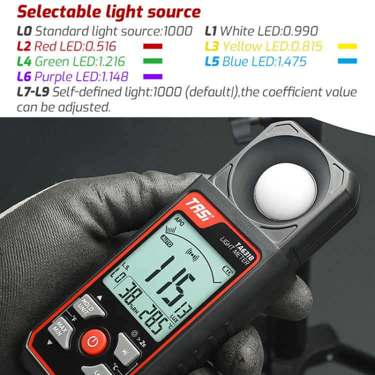 1. Measuring range: TA631A: 0.1-200000LUX/0.01-20000FC; TA631B: 0.1-300000LUX/0.01-30000FC