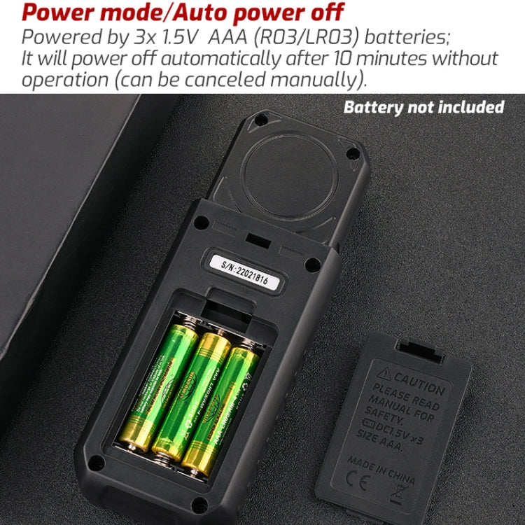 11. Power supply: 3 x 1.5V AAA (R03/LR06) batteries (not included)