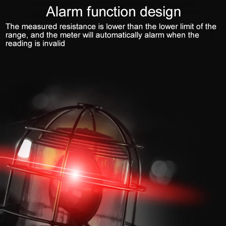 11. Alarm function design, the measured resistance is lower than the lower limit of the range, and the reading will automatically alarm when it is invalid