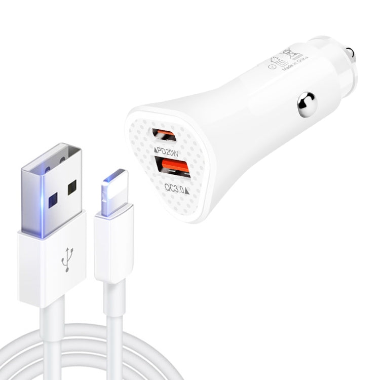 TE-P23 38W PD 20W USB-C / Type-C + QC3. 0 USB Triangle Car Charger + USB to 8 Pin Data Cable, Length: 1m(White)