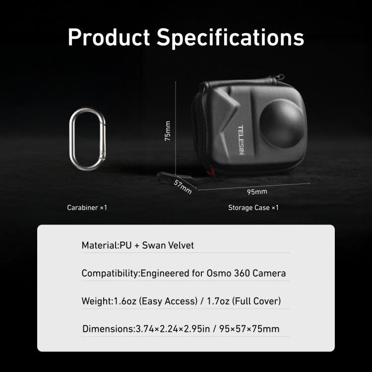 TELESIN Full-Coverage PU Carrying Case for DJI Osmo 360 Camera Protective Pouch with Carabiner Clip
