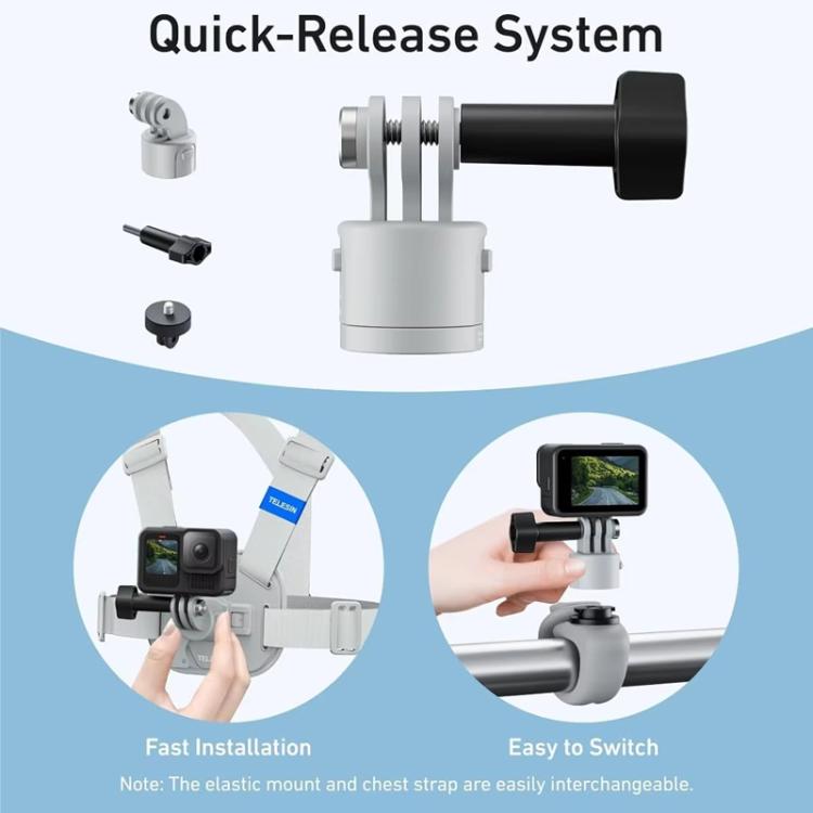 TELESIN S2-CGP-01GY Universal Action Camera Chest Belt Bracket Quick Release Chest Strap Mount(Gray)