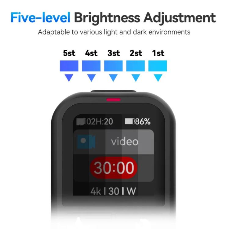 2. 1.4inch HD color screen, real-time display of shooting status, recording time, host, remote control power can be displayed