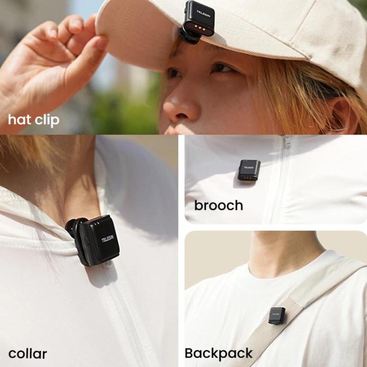 TELESIN Wireless Lavalier Microphone Noise-Canceling Magnetic Button Microphone(Black)