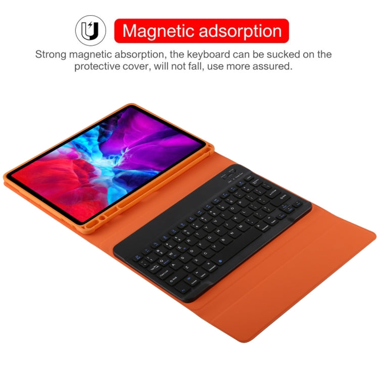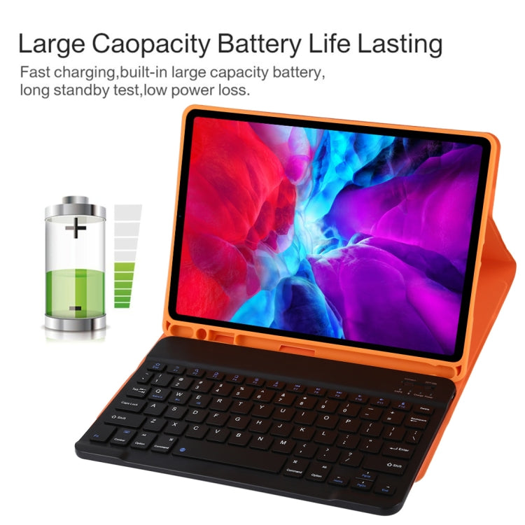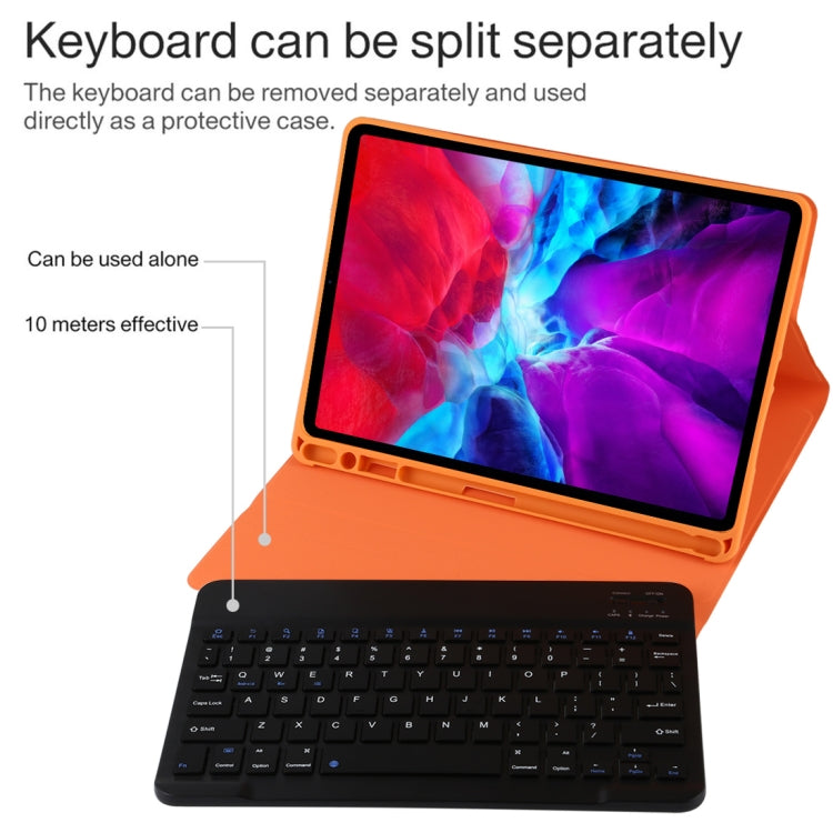 TG11B Detachable Bluetooth Black Keyboard + Microfiber Leather Tablet Case for iPad Pro 11 inch (2020), with Pen Slot & Holder (Orange)
