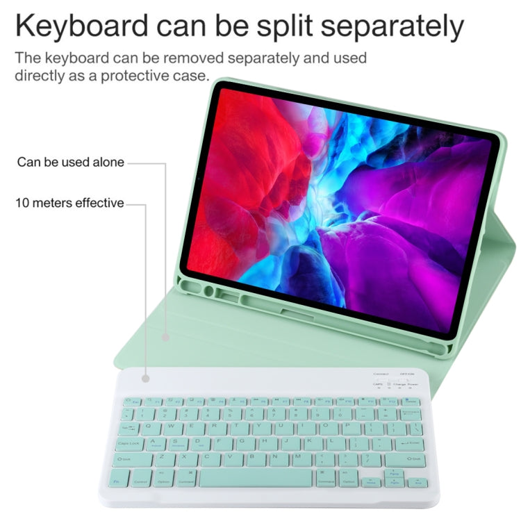 TG11B Detachable Bluetooth Green Keyboard + Microfiber Leather Tablet Case for iPad Pro 11 inch (2020), with Pen Slot & Holder (Green)
