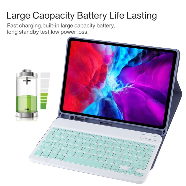 TG11B Detachable Bluetooth Green Keyboard + Microfiber Leather Tablet Case for iPad Pro 11 inch (2020), with Pen Slot & Holder (Purple)