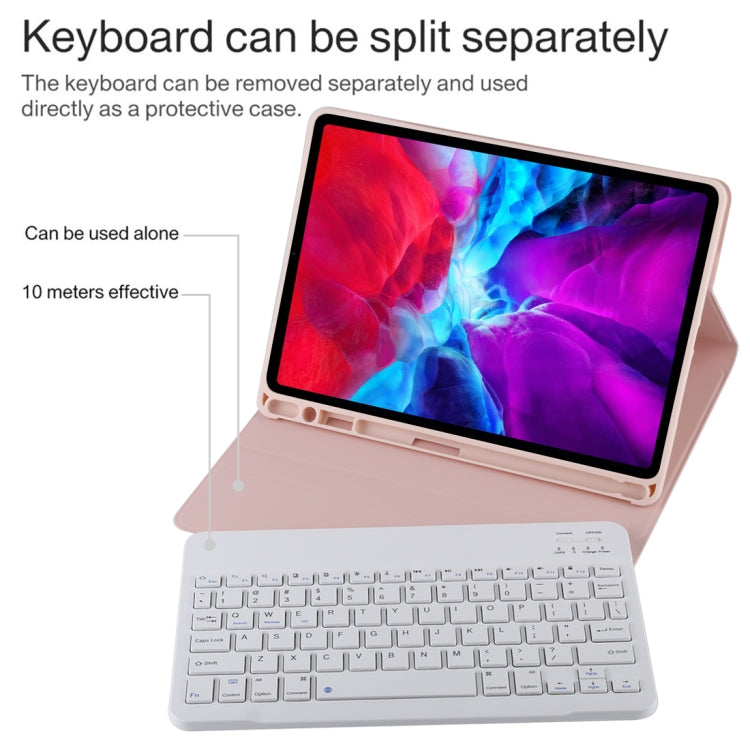 TG11B Detachable Bluetooth White Keyboard + Microfiber Leather Tablet Case for iPad Pro 11 inch (2020), with Pen Slot & Holder (Pink)