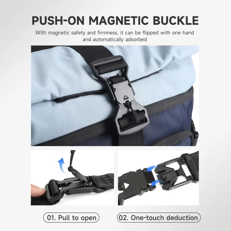 2. Roll-Top Expandable Design with hook-and-loop tape + buckles (press-to-close magnetic buckle for one-handed operation, auto-lock feature, easy pull-to-open/push-to-close). Supports two carrying modes for flexible capacity adjustment.