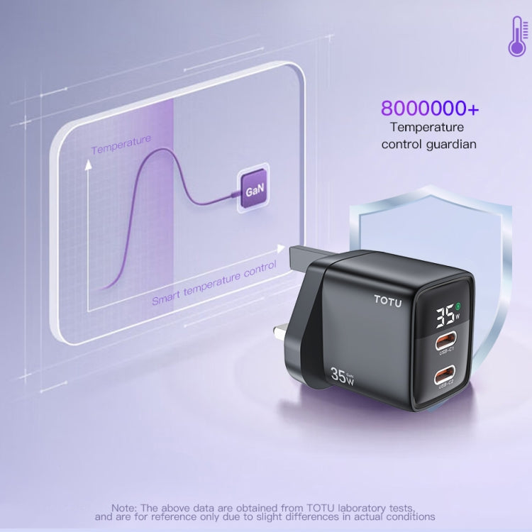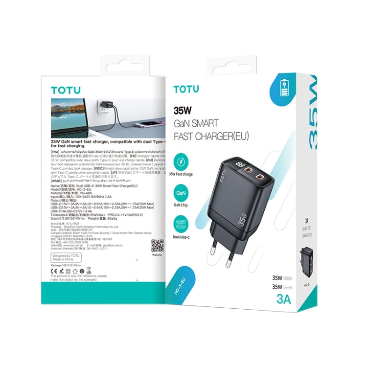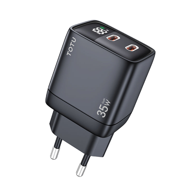 TOTU 35W GaN Dual USB-C/Type-C Smart Digital Display Charger, Plug:EU Plug(Black)
