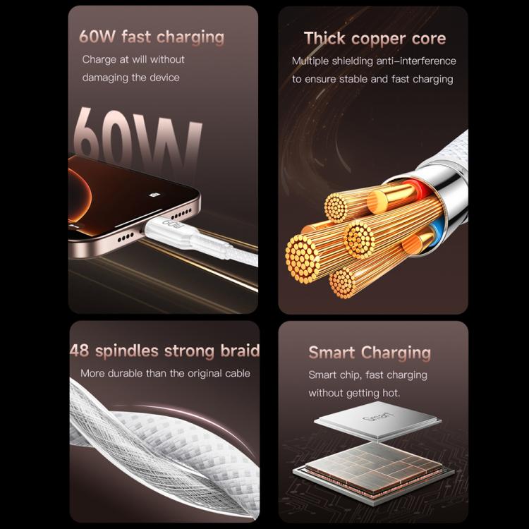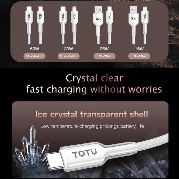TOTU CB-20-CC 60W USB-C / Type-C to Type-C Crystals Braided Data Cable, Length:1.2m(White)