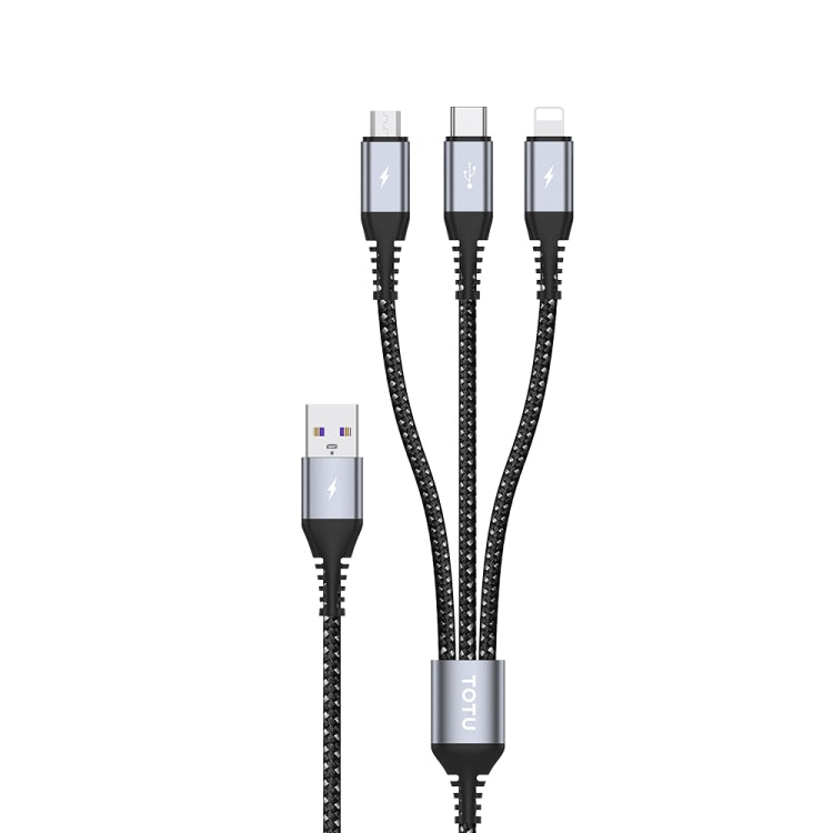 TOTU CB-5-3 3 in 1 17.5W USB to 8 Pin+Micro USB+USB-C/Type-C Multifunctional Data Cable, Length: 1.2m(Grey)