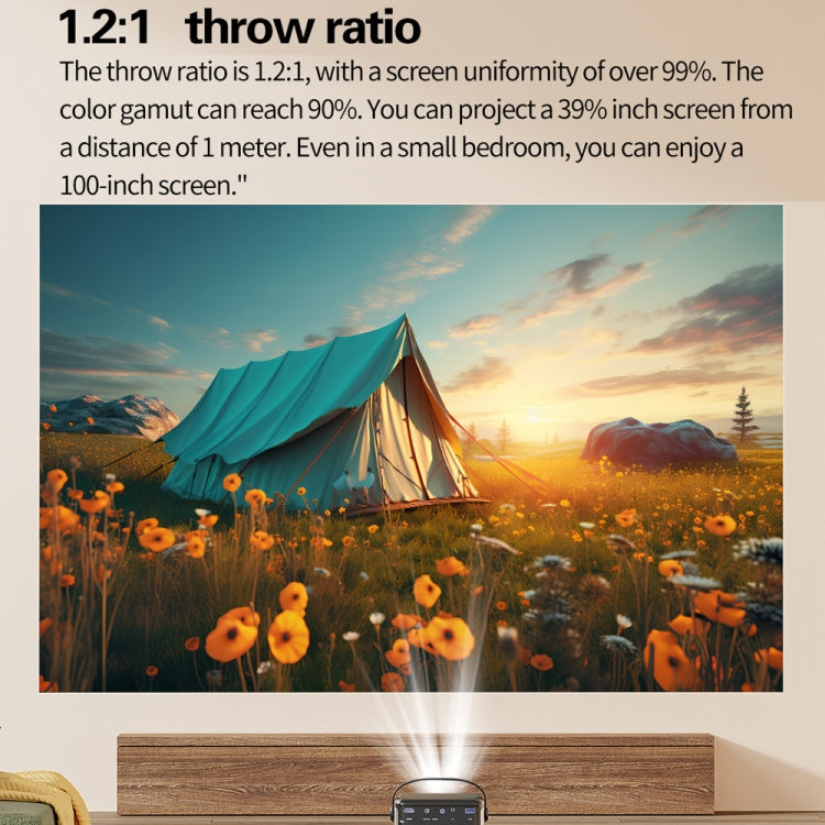 3. Projection ratio of 1.2:1, the screen uniformity of more than 99%, color gamut can reach 90%, 1 meter distance can project 39 inches screen