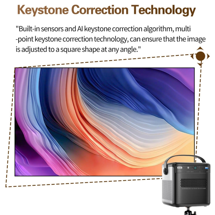 8. Built-in sensors and AI keystone correction algorithm, multi-point keystone correction technology, which can ensure that any angle can be adjusted to be a square image