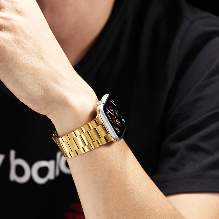 Ultra-thin Three-bead Metal Strap Watch Band For Apple Watch Series 9&8&7 41mm / SE 3&SE 2&6&SE&5&4 40mm / 3&2&1 38mm(Gold)
