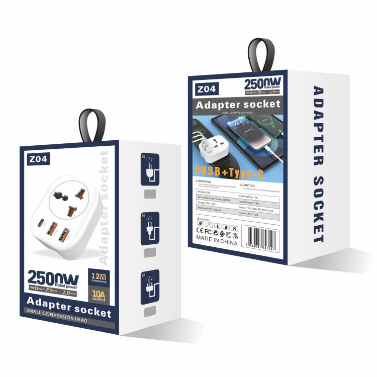 Universal Converter Plug 2USB+Type-C Smart Converter Socket US Plug(White)