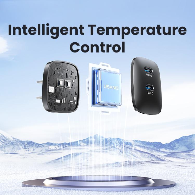 USAMS CC306 T66 45W Dual USB-C / Type-C GaN Fast Charger, US Plug(Gunmetal)