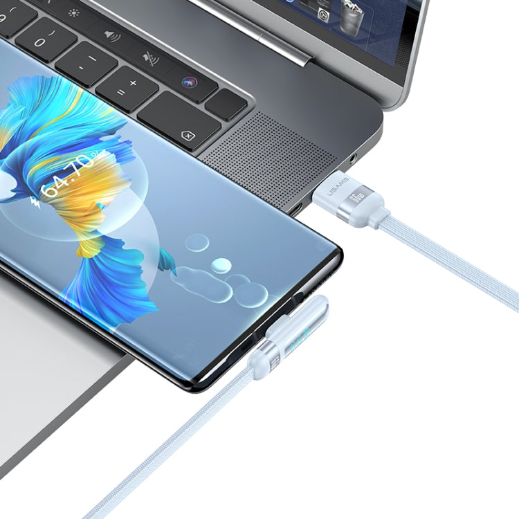 USAMS US-SJ651 6A USB to USB-C/Type-C Aluminum Alloy Digital Display Fast Charging Elbow Data Cable, Length: 1.2m(Blue)