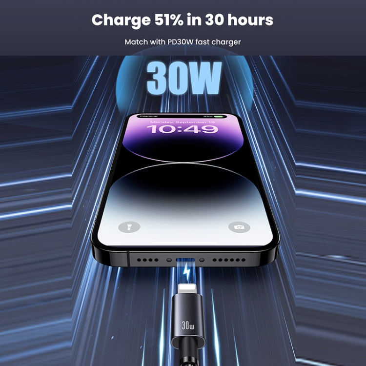 USAMS US-SJ662 Type-C To 8 Pin 30W Fast Charge Data Cable, Length: 1.2m(Black)