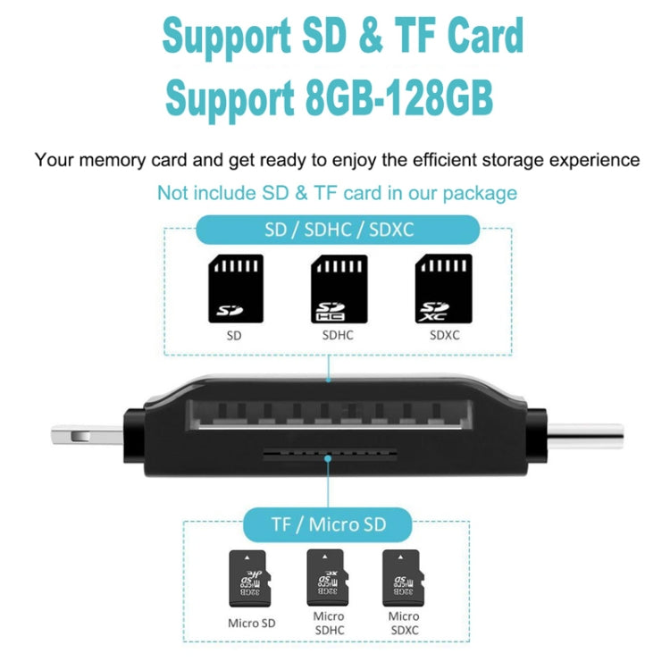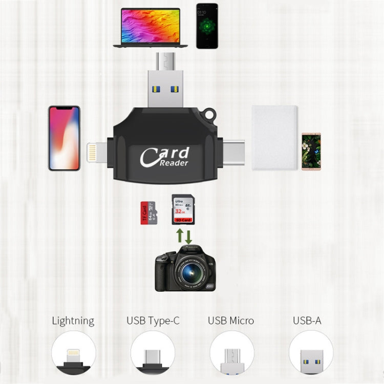 USB 2.0+8Pin +Type-C+Micro USB 4 In 1 Card Reader Supports Reading SD&TF Car(White)