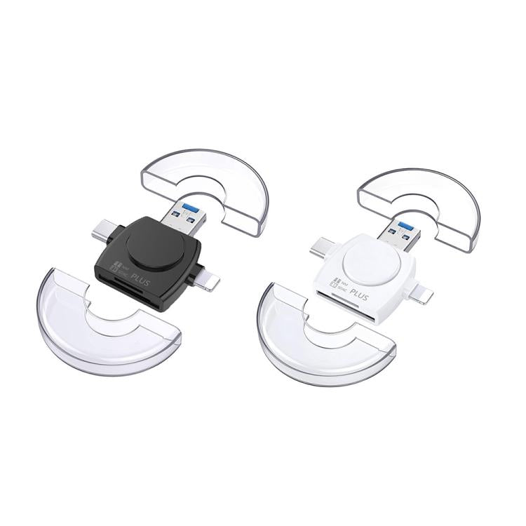 USB 3.0 To USB-C / Type-C / 8 Pin 6-In-1 Multifunctional TF / SD / NM Card Reader(White)